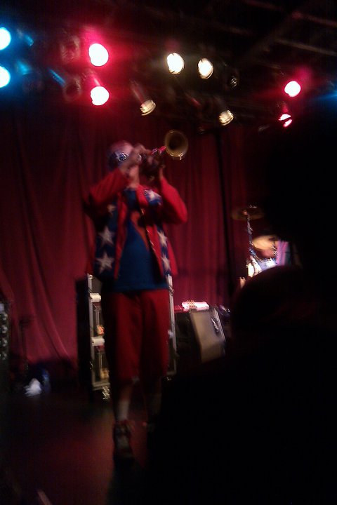 We were let into the facility around 7:30 and the first band went on at 8:30. The first band, representing Cornelia, Georgia, were called the Taj Motel Trio. From my research prior to the show, I found out that this band has been around for about 10 years and has shared the stage with a ton of big named Ska groups such as the Mighty Mighty Bosstones and Mustard Plug and for some weird reason has opened for Bon Jovi at one of his Atlanta shows. Containing guitar, bass, 2 Saxophones, a trumpet, a trombone and drums, the Taj Motel Trio forced out a 30-45 minute Ska riot harder than I’ve seen since Streetlight Manifesto. They ran through songs from their two albums, “Feels the Force” and “Part of the Problem.” In true third wave Ska style, TTMT rocked out some hard, horn-heavy-driven tunes mixed with a steady skanking rhythm underneath fun and catchy lyrics that often made you sing along even though you didn’t know the words. Memorable tunes were “Vader,” “Stop Playing Games,” “Another Drink,” and “OAOAO.” After the show we caught up with TTMT’s lead singer / guitar player Ben Sanders. We spoke briefly on their awesome set, how excited I was to have them playing for my friend and his girlfriend’s first ska show and bought both of their CDs, receiving a free sticker and button (the sticker is now on my blue acoustic that I’ve named Ferris).