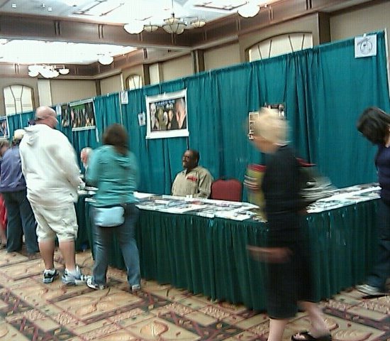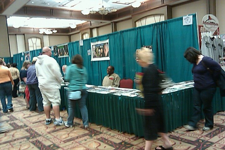 We got some autographs from the above and snapped some photos (Erin’s phone came to the rescue after your humble narrator forgot both cameras he indented to bring) and also spoke with some of the venders, filmmakers, actors and promoters including Derek Young, writer and director of Midnight Matinee Psycho, William Mahaffey representing Knoxville Horror Film Fest, actor David Fultz promoting his recent film “My Bloody Wedding” and others.