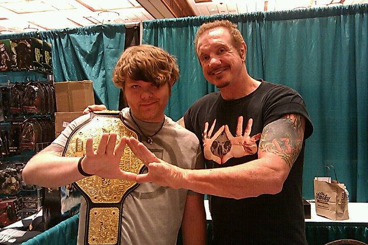 Before hitting the road, we were slightly disappointed to hear that some of the stars, namely Heather Langenkamp of A Nightmare on Elm Street fame, Bill Moseley of House of 1000 Corpses fame, Daeg Faerch of Rob Zombie’s Halloween fame and Tony Todd of Candyman fame – among a few others – had canceled last minute due to flight problems or filming obligations, but the ball room still left very little room for improvement. We rubbed shoulders with Ogre – Pavi Largo from Repo! The Genetic Opera, Mark Patton – Jesse from A Nightmare on Elm Street pt. 2: Freddy’s Revenge, and Diamond Dallas Page – namely from WCW / WWE from the past (and possibly present, I don’t know) and the Devil’s Rejects. Everyone was super nice, friendly and chatty (for lack of better term). I’ve found guests at horror cons tend to be like this and that makes me proud that it’s my industry.
